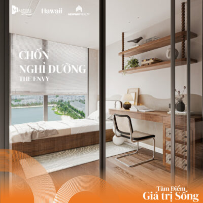 - Tiêu chuẩn bàn giao căn hộ Studio tại The Envy – H2, phân khu Hawaii Các căn hộ Studio tại The Envy – H2, Masteri Waterfront được trang bị nội thất đạt chất lượng quốc tế, được thực hiện bởi các nhà thầu uy tín trên toàn cầu như Tange Associates (Nhật Bản), Studio HBA (Mỹ), Belt Collins (Hoa Kỳ). Khi nhận nhà, các căn hộ đã được trang bị đầy đủ nội thất cơ bản, đảm bảo chất lượng và tính thẩm mỹ. Điều hòa chỉ sử dụng 1 giàn nóng, thiết bị vệ sinh Kohler cao cấp, thiết bị bếp Hafele Schott Ceran, khóa cửa Hafele cao cấp, và sàn gỗ cao cấp là một số trong những tiện ích và nội thất được bàn giao.
