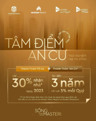 CSBH LẦN ĐẦU TIÊN TẠI VIỆT NAM ” TÂM ĐIỂM AN CƯ” Chương trình “TÂM ĐIỂM AN CƯ – TRẢI NGHIỆM GIÁ TRỊ SỐNG” với key chính là: Thanh toán tối đa chỉ 30% – Nhận nhà ở hoặc cho thuê ngay 2023 và thanh toán An Cư lên tới 3 năm với tất cả các dự án của Masterise Homes tại Hà Nội.