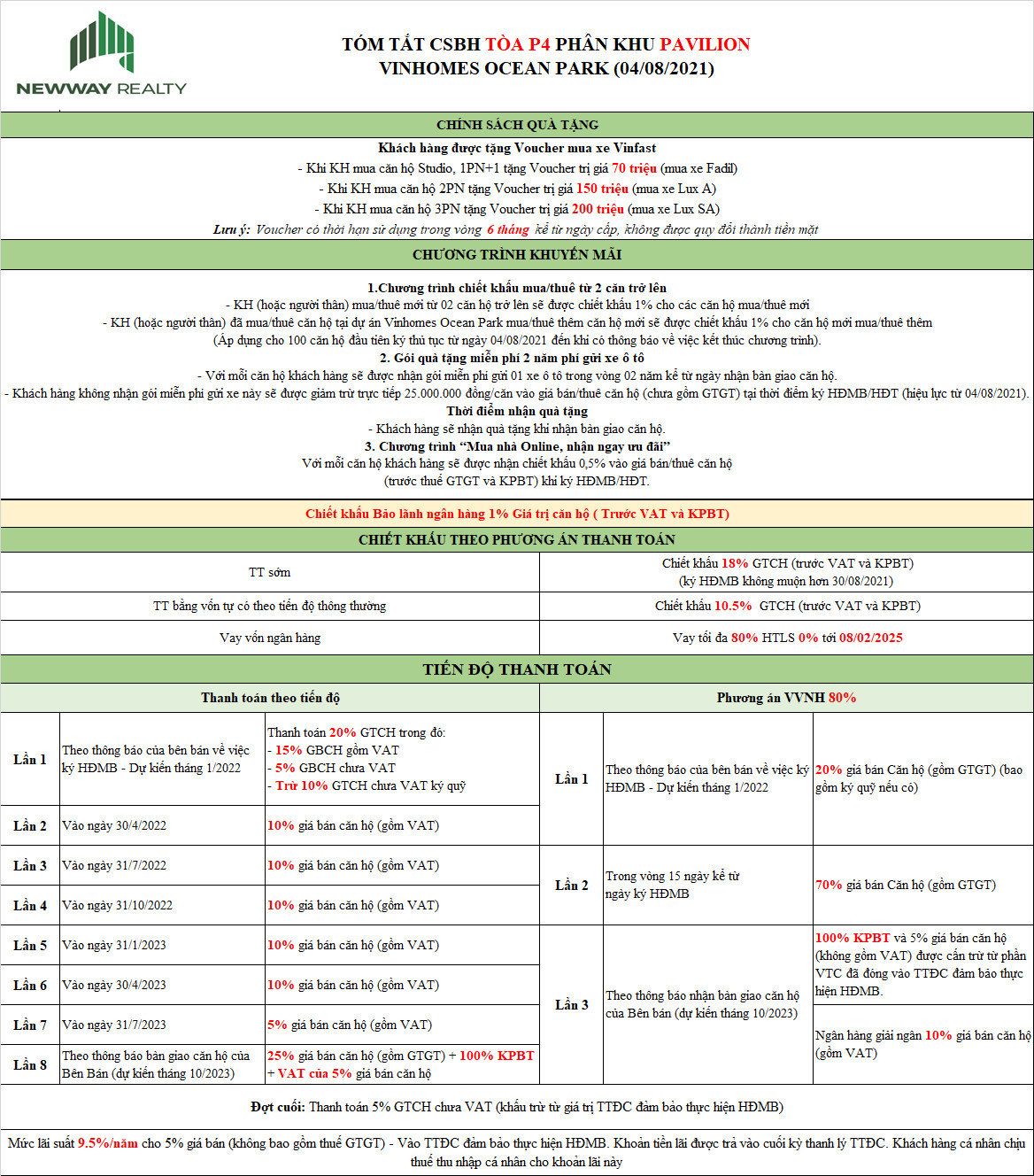 Chính sách bán hàng mới nhất dự án The Pavillion – Vinhomes Ocean Park. Liên hệ Newway Realty để nhận thêm thông tin dự án Bất Động Sản Vinhomes: 0889.898.388 / 0909.842.139