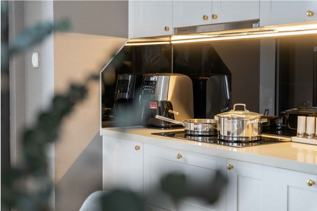 Điểm khác biệt giữa thiết kế hai dòng căn hộ nằm ở khu vực bếp, mang lại sự đa dạng cho khách hàng theo thói quen sống của chủ nhân. Căn hộ 2 phòng ngủ sở hữu hệ tủ bếp hình chữ L, rộng rãi nhưng không “phí phạm” diện tích. Khu vực bếp nối liền với phòng khách tạo ra một không gian sinh hoạt chung ấm cúng. Với thiết kế này, quỹ thời gian ít ỏi dành cho nhau của các gia đình hiện đại sẽ luôn có sự hiện diện đầy đủ các thành viên. Đặc biệt, không gian nối liền này sẽ giúp bố mẹ có thể dễ dàng quan sát, tương tác với các em bé kể cả khi đang chuẩn bị đồ ăn; đảm bảo yếu tố an toàn mà nhiều gia đình trẻ chú trọng.