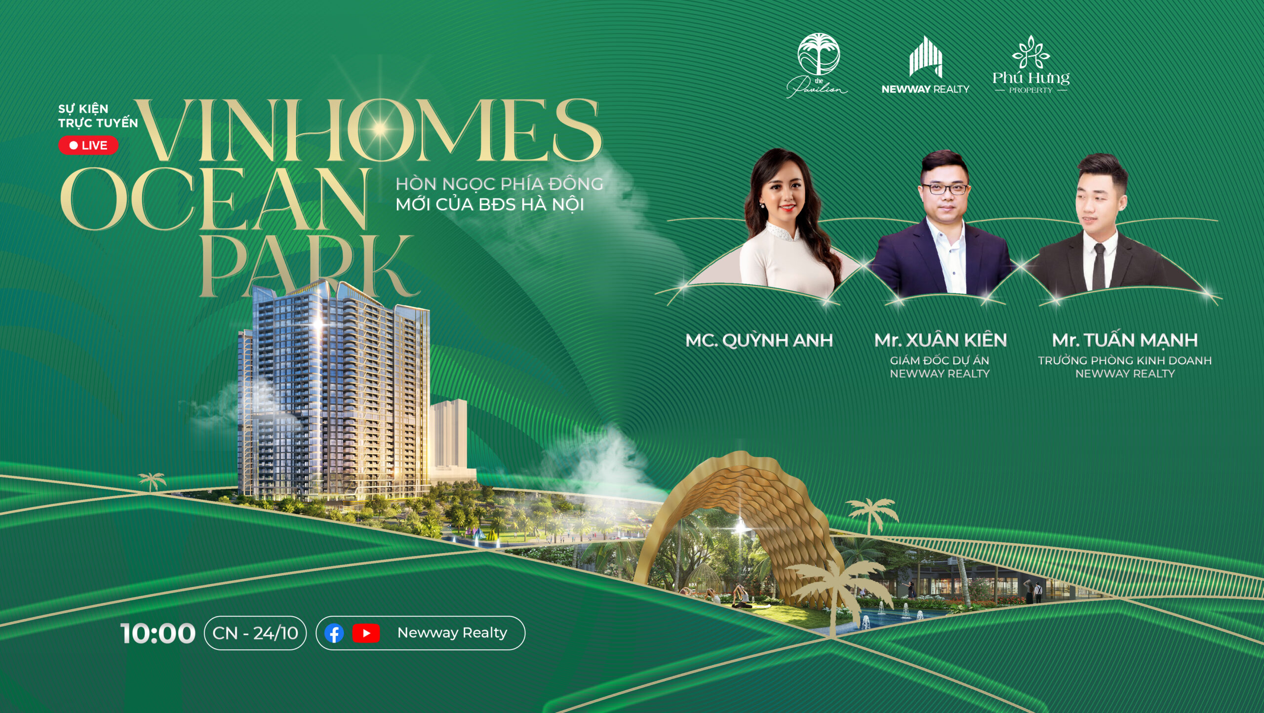 Và còn nhiều thông tin và sự thay đổi diệu kỳ của Vinhomes Ocean Park với vùng đất phía Đông Hà Nội sẽ được chúng tôi bật bí trong sự kiện “Vinhomes Ocean Park Hòn ngọc phía Đông mới của bất động sản Hà Nội” vào lúc 10h ngày 24/10/2021 trên fanpage & youtube của Newway Realty